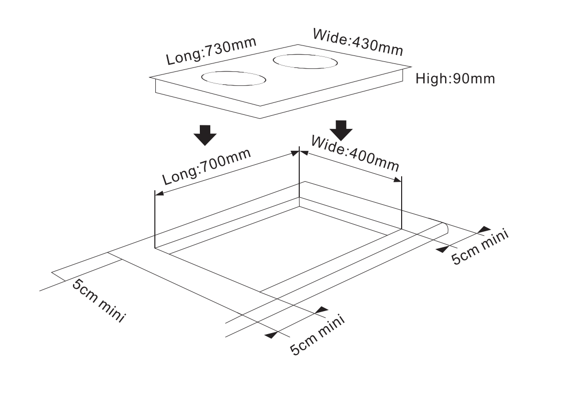 – Kích thước khoét đá: 700mm x 400mm