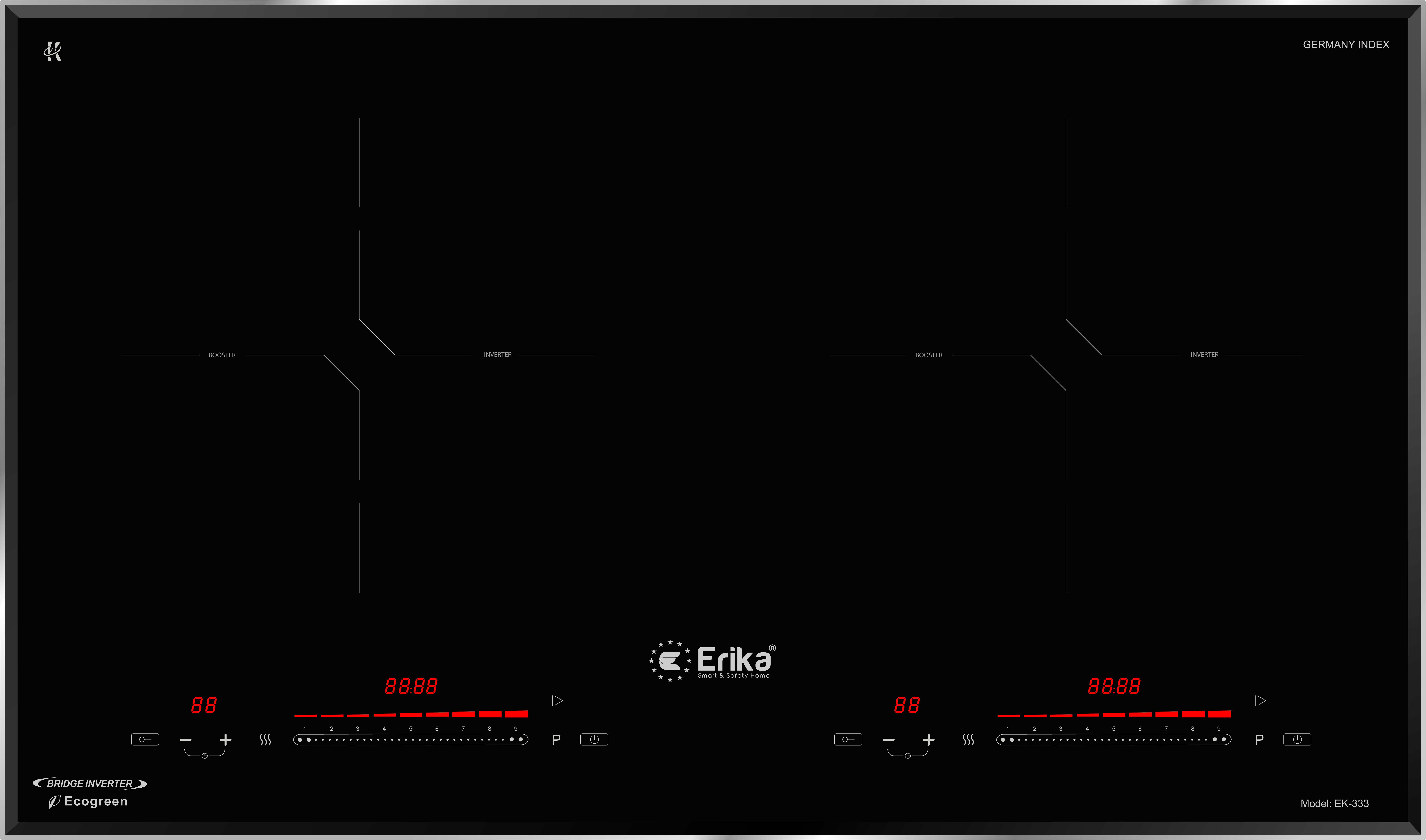 ● Bảng điều khiển cảm ứng tích hợp Touch (chạm) và Slide (trượt) độc lập cho 2 vùng nấu dễ dàng và tiện lợi khi sử dụng